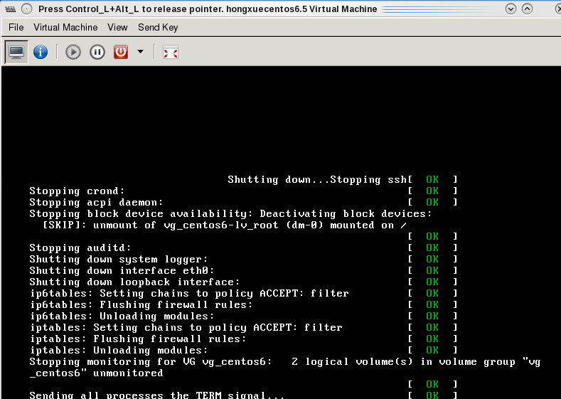 等待acpd服务启动之后,即可通过 virsh shutdown 来正常关机。
